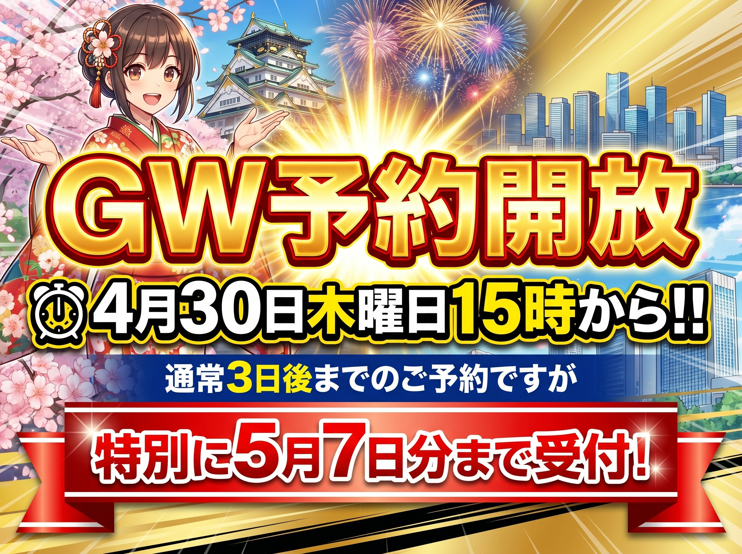 4月30日15時から5月7日までのご予約受付しちゃいます♪